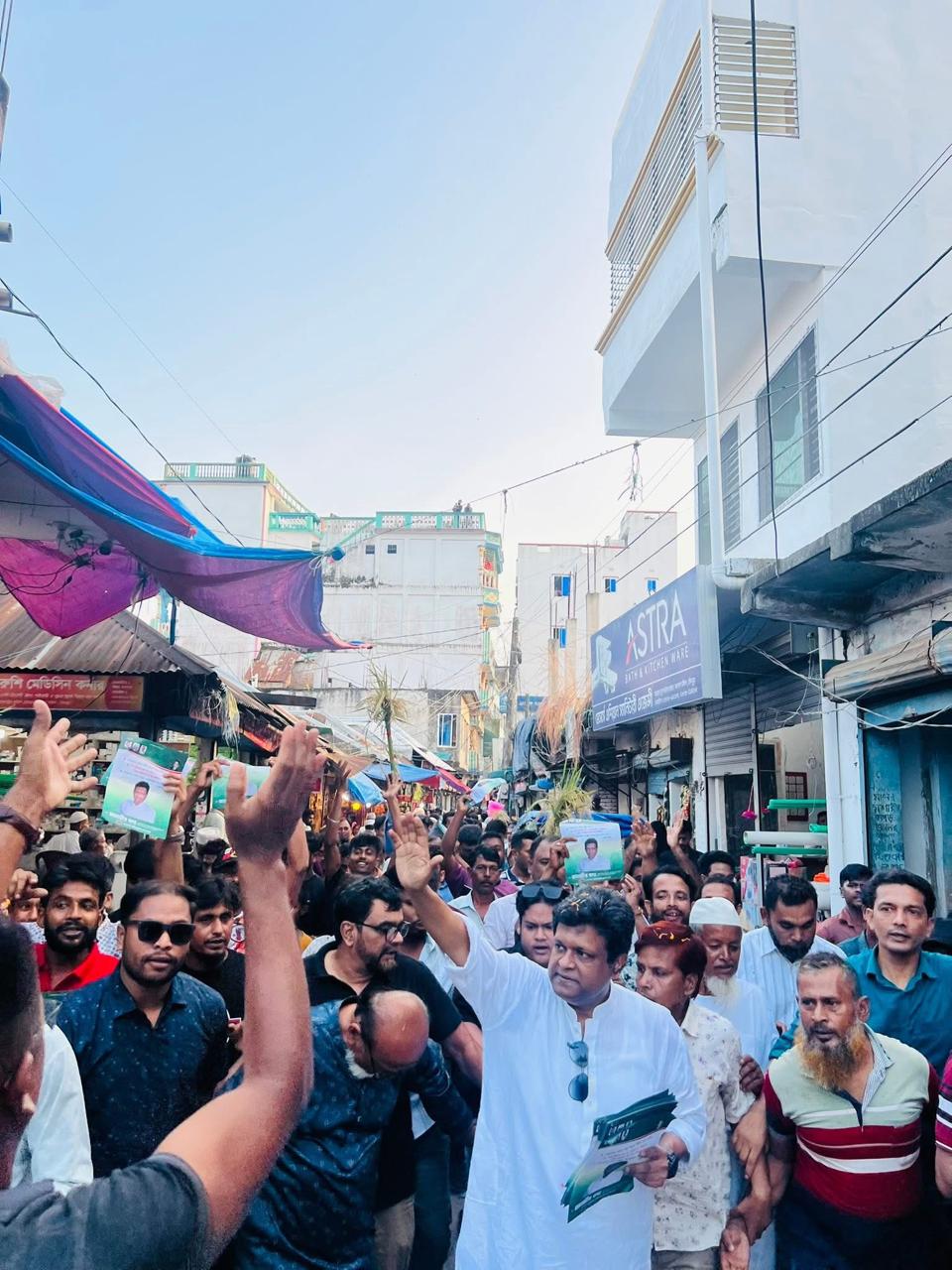 ৩১ দফা বাস্তবায়নের লক্ষে মতলব দক্ষিণ উপজেলার নারায়াণপুর বাজারে লিফলেট বিতরণ ও গণসংযোগ