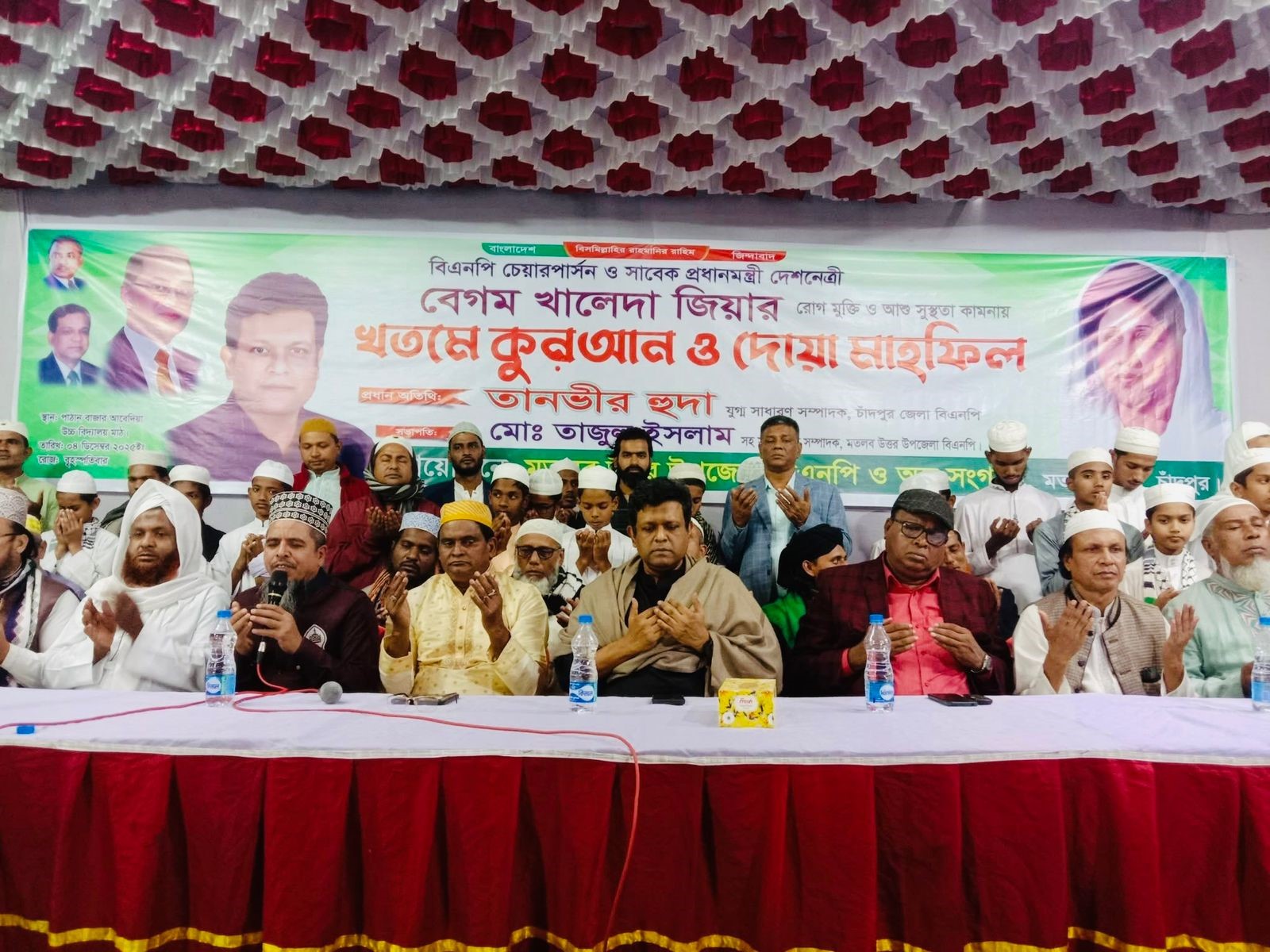 বিএনপি চেয়ারপার্সন, সাবেক প্রধানমন্ত্রী, দেশনেত্রী বেগম খালেদা জিয়ার রোগমুক্তি ও সুস্থতা কামনা করে মতলব উওর উপজেলার পাঠানবাজার হাইস্কুল মাঠে খতমে কুরআন এবং দোয়া মাহফিল