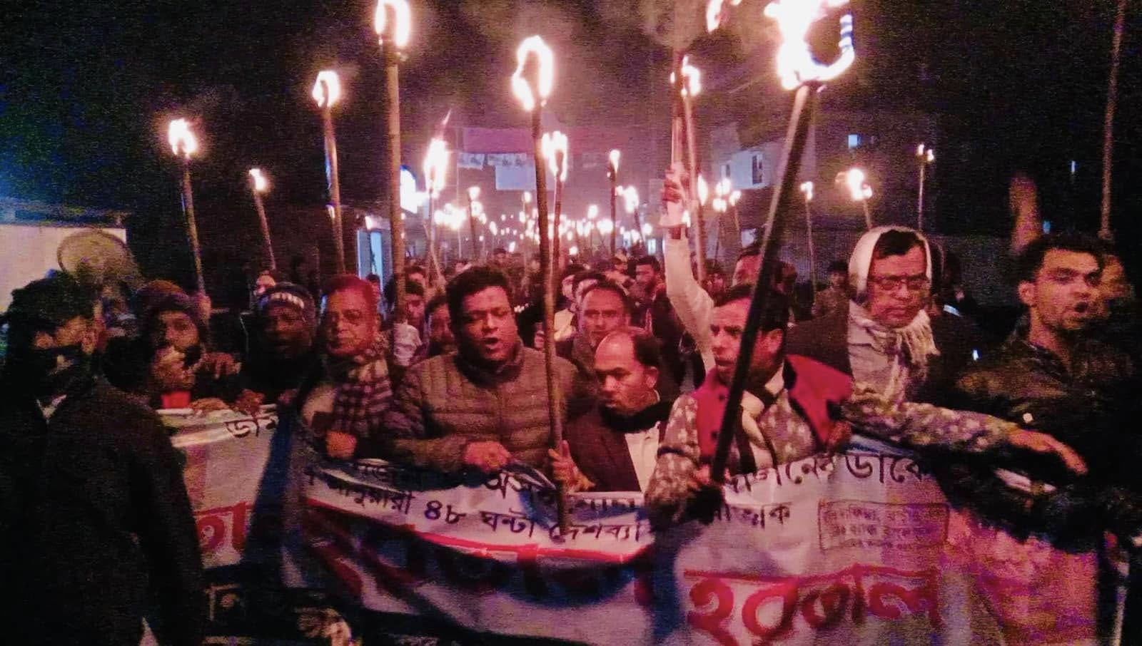 ৭ই জানুয়ারি প্রহসনের নির্বাচন বর্জন এবং বিএনপি'র ডাকা সারা দেশব্যাপী হরতালের সমর্থনে মতলব দক্ষিণে মশাল মিছিল