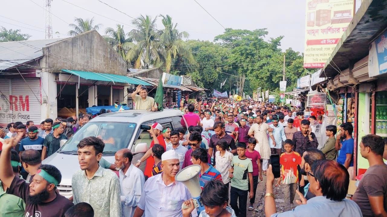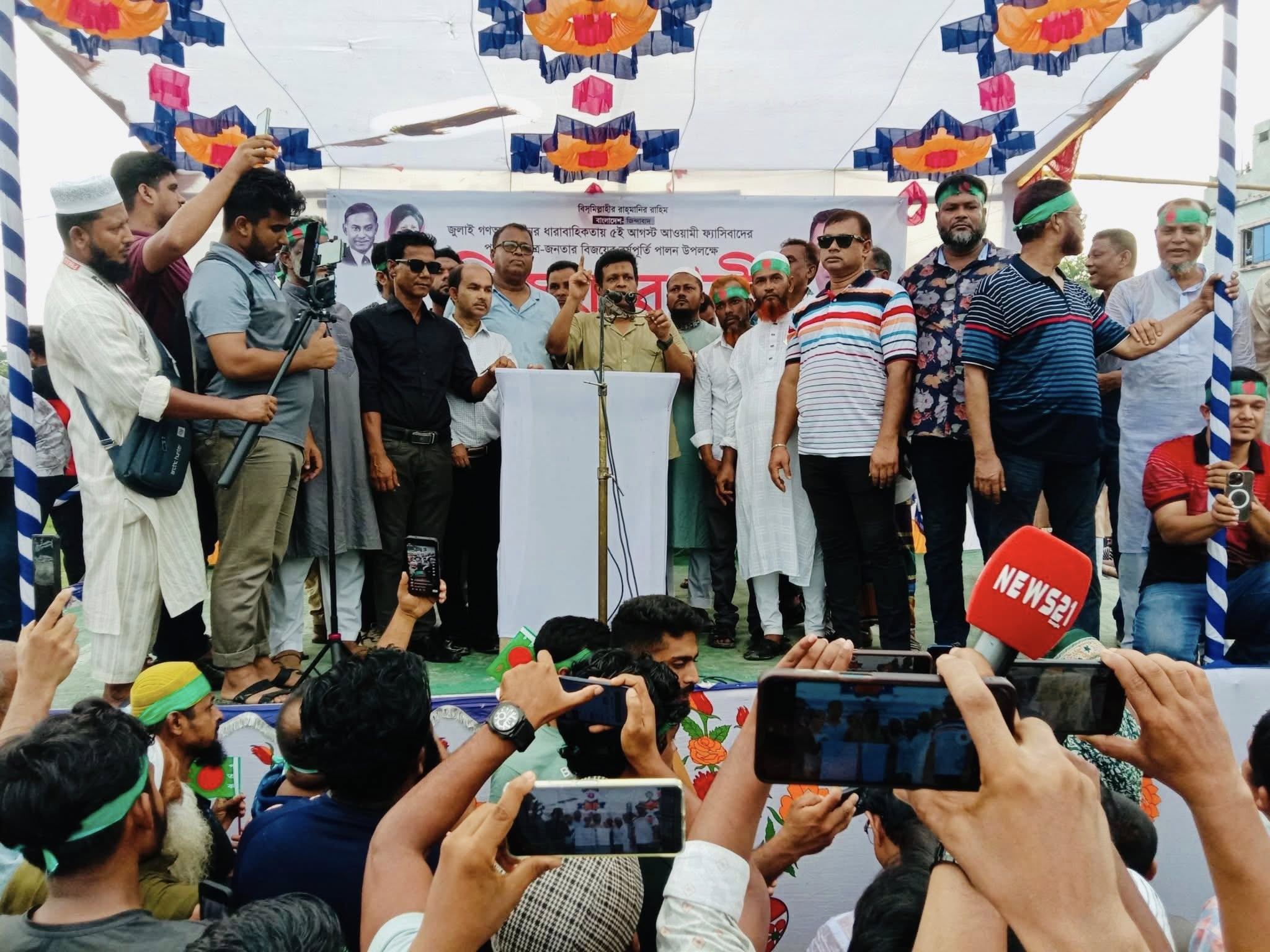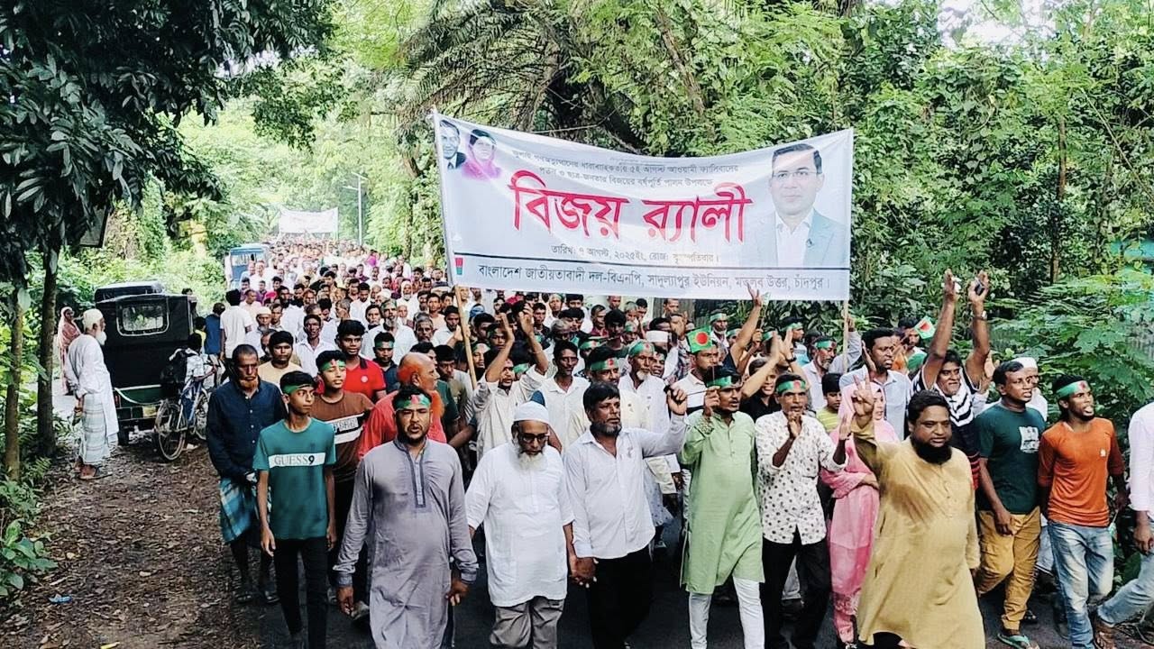 জুলাই-আগস্ট গণঅভ্যুত্থানের ধারাবাহিকতায় ৫ই আগস্ট আওয়ামী ফ্যাসিবাদের পতন ও ছাত্র-জনতার বিজয়ের বর্ষপূর্তি উপলক্ষে চাঁদপুর-২ আসনের ছেংঙ্গারচর পৌরসভায় বিজয় র্যালী এবং সমাবেশ