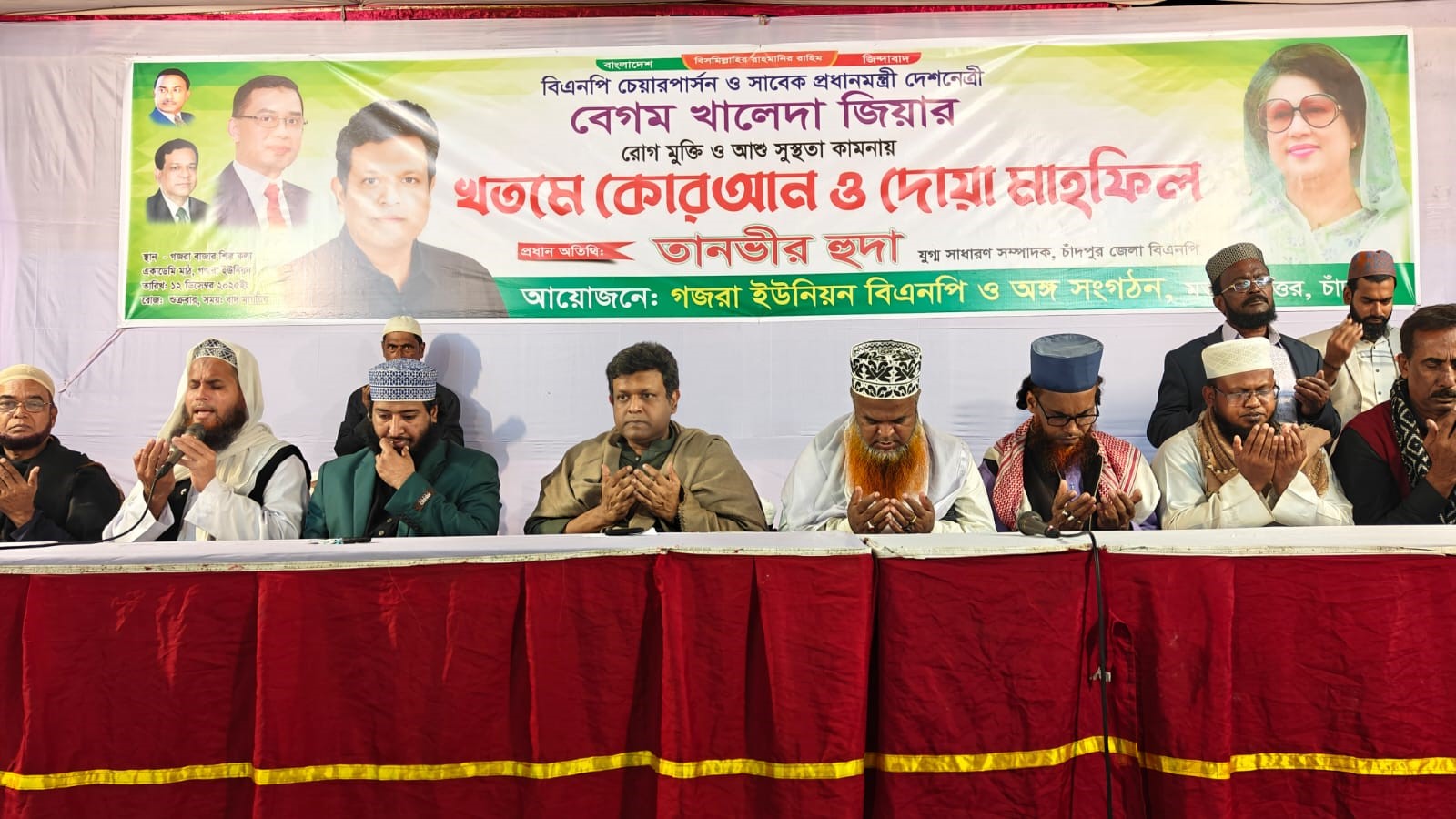 বিএনপি চেয়ারপার্সন, সাবেক প্রধানমন্ত্রী, দেশনেত্রী বেগম খালেদা জিয়ার রোগমুক্তি ও সুস্থতা কামনা করে মতলব উওর উপজেলার গজরা ইউনিয়ন শিল্পকলা একাডেমী মাঠে খতমে কুরআন এবং দোয়া মাহফিল