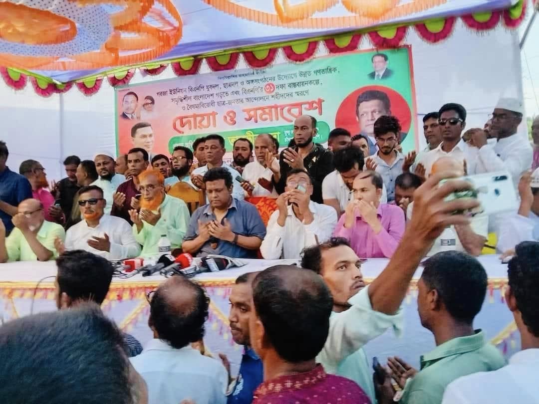 মতলব উত্তর উপজেলার গজরা ইউনিয়নে বিএনপি'র ৩১ দফা বাস্তবায়ন এবং বৈষম্যবিরোধী ছাত্র-জনতার আন্দোলনে শহীদদের স্মরণে দোয়া ও জনসমাবেশ