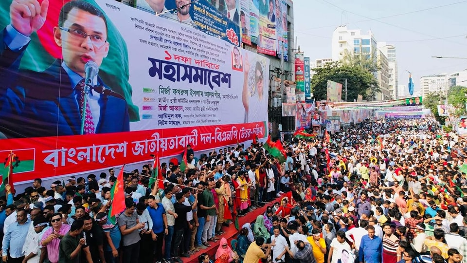 অবৈধ সরকারের পদত্যাগ ও নির্দলীয় নিরপেক্ষ সরকারের অধীনে নির্বাচনের ১ দফা দাবিতে নয়া পল্টনে বিএনপি'র মহাসমাবেশ