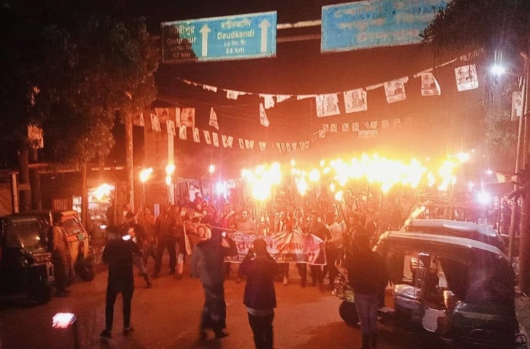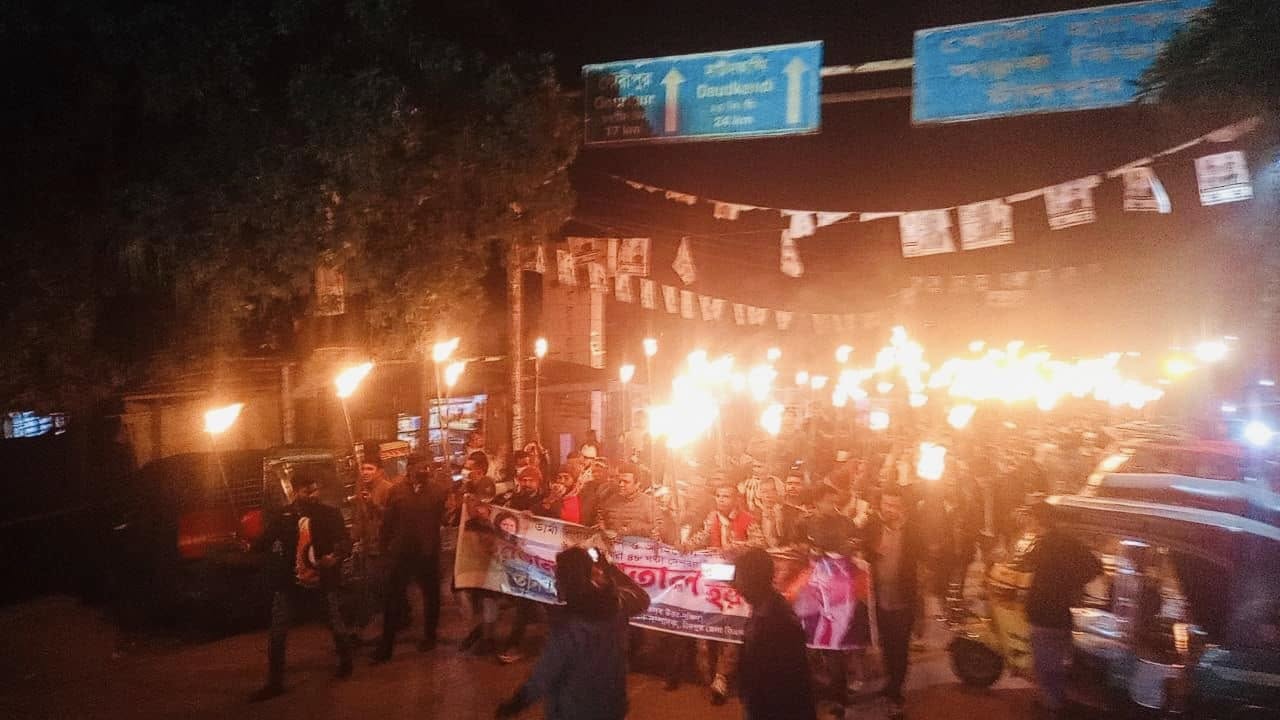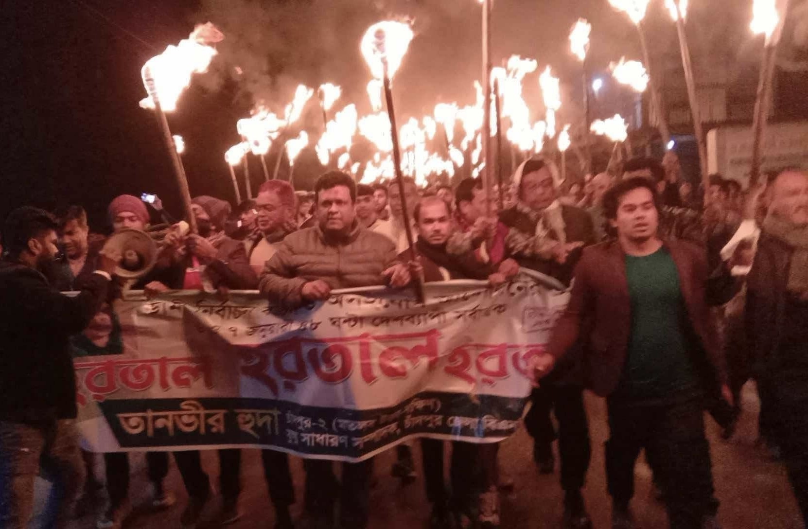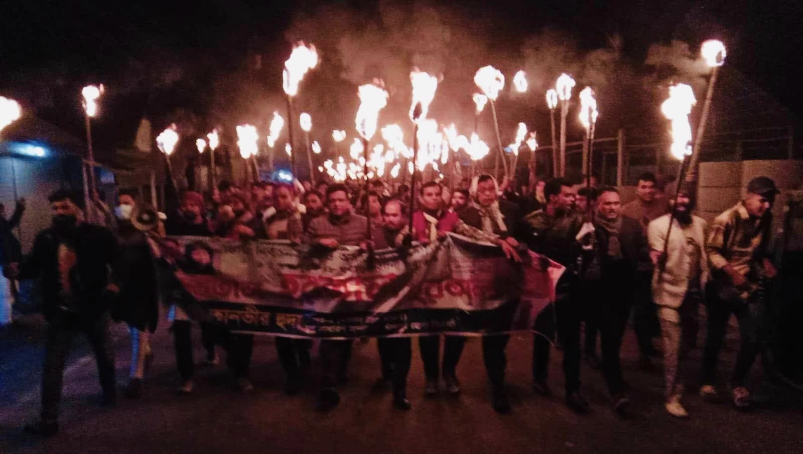 ৭ই জানুয়ারি প্রহসনের নির্বাচন বর্জন এবং বিএনপি'র ডাকা সারা দেশব্যাপী হরতালের সমর্থনে মতলব দক্ষিণে মশাল মিছিল